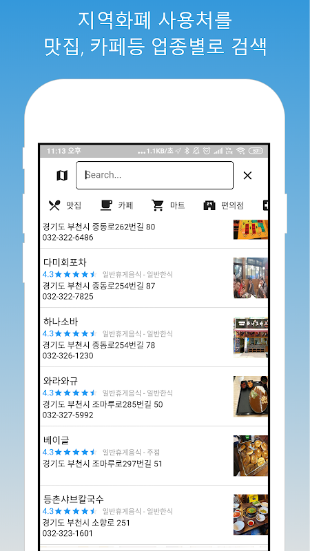 แผนที่แสดงที่ตั้งของสกุลเงินท้องถิ่นได้อย่างรวดเร็วตามสถานที่ตั้ง (สกุลเงินภูมิภาคคยองกี)