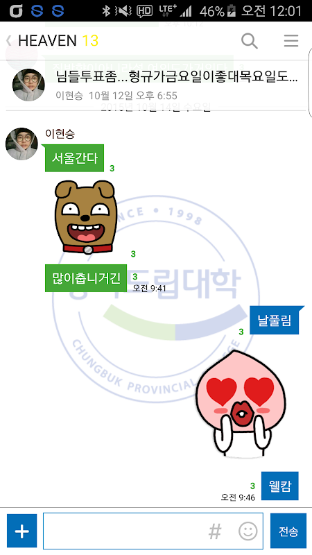 ▷충북도립대 적용하기 버튼을 누릅니다.