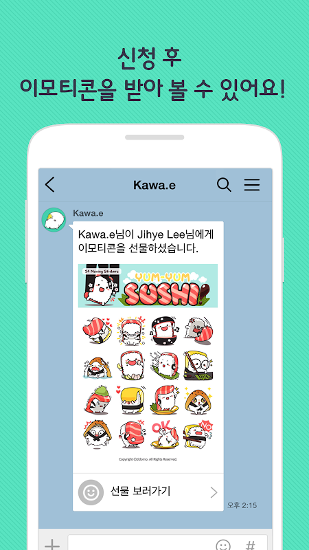 카와이는 이모티콘을 무료로 받을 수 있는 어플입니다!