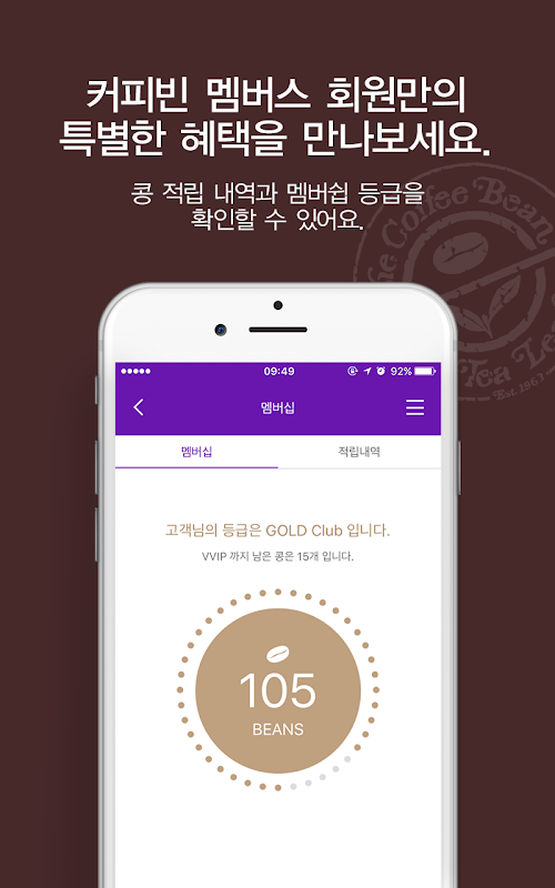 커피빈 멤버스 클럽 애플리케이션에서 회원가입이 필요합니다.