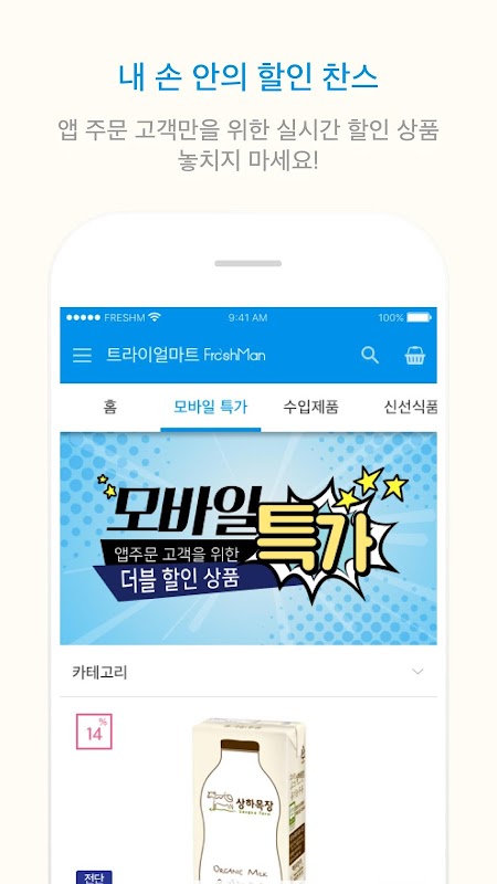 우리 동네 최저가 마트 ‘트라이얼마트’가 모바일 앱을 출시 했습니다!