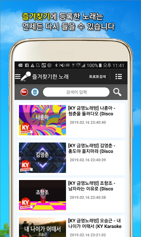 You can listen to trot music accompaniment on your smartphone and practice singing and recording as in karaoke.