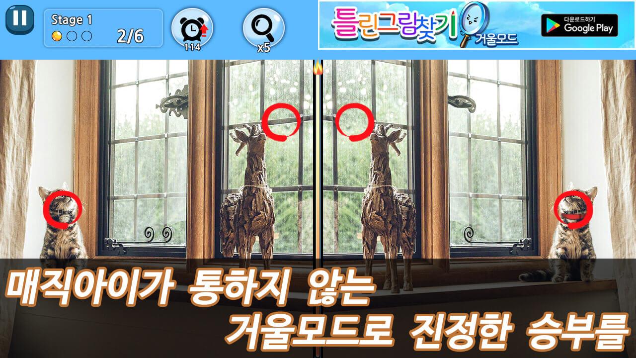 평범한 틀린그림찾기와는 다른, 거울모드로 한 층 업그레이드된 게임을 만나보세요.