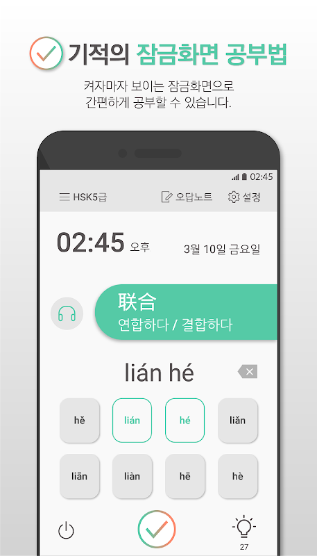 카톡확인에, 인스타, 페북 확인, 심지어 무의식적으로 한번 쓰윽 폰을 열어보지만, 폰을 열 때마다 병음퀴즈 하나씩 가볍게 풀다지면 알게모르게 공부가 정말 많이 되겠죠?