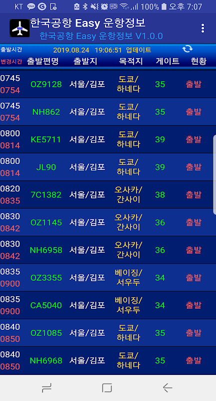 ชื่อแอป: ข้อมูลขาเข้า / ขาออกของสนามบินเกาหลี v1.0.6