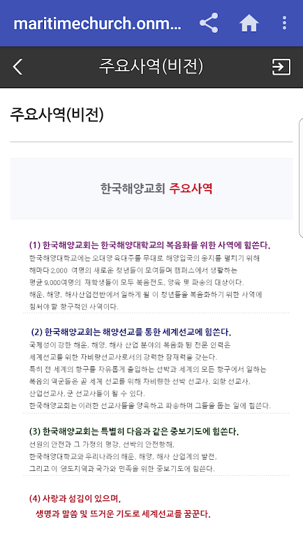 This app is the app in conjunction with 'Korea Ocean Church "website.