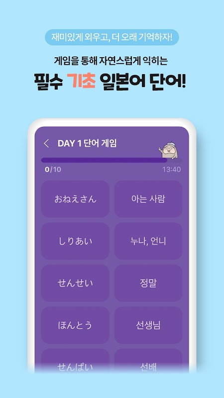 - เกมจับคู่คำศัพท์ที่ตรงกับความหมายภาษาญี่ปุ่นและเกาหลีอย่างถูกต้อง