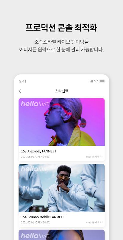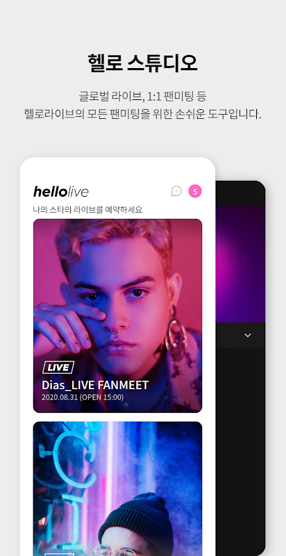 แอปที่ใช้งานจริงสำหรับเนื้อหา Hello Live เช่นแฟนมีตติ้ง 1: 1 การถ่ายทอดสดทางออนไลน์ชุมชนแฟนทั่วโลกสินค้าดิจิทัล ฯลฯ