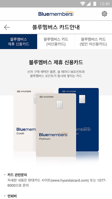 * 블루멤버스 회원은 오프라인에서 인증을 받은 정회원 또는 현대자동차 신차 구매이력이 있는 경우에 한 해 카드 및 포인트 서비스를 제공합니다.