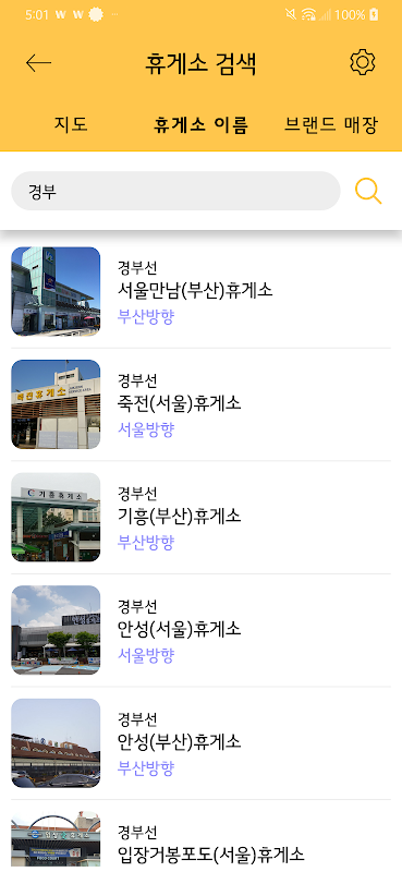 - 휴게소별 편의시설, 주유소 가격정보 제공