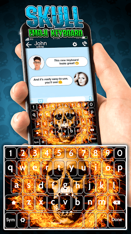 💀🖤💀 If you think that your phone is too boring - don't worry! We'll help you make it cool and eye-catching with our new “keyboard themes”! If you like “fire and skulls” - this will be your number one option! Enhance your keyboard with a powerful “skull theme”! Our 💀Skull Emoji Keyboard💀 is one of the best “keyboard apps” and you’ll surely like it! 💀🖤💀