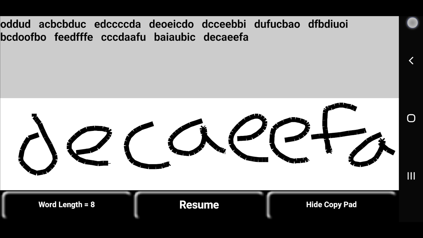 ขณะใช้ Copy Pad คุณสามารถรับชุดอักขระรหัสมอร์สและเขียนลงในช่องว่างด้วยนิ้วหรือสไตลัสได้ หลังจากที่แสดงสตริงแล้ว แอปจะหยุดชั่วคราวเพื่อให้คุณสามารถตรวจสอบความถูกต้องด้วยตนเองได้ ช่องว่างจะถูกล้างโดยอัตโนมัติและมีการเล่นชุดอักขระใหม่ คุณสามารถเปลี่ยนความยาวของคำได้ตั้งแต่ 1 ถึง 10 ตัวอักษร Copy Pad จะไม่พยายามจดจำลายมือของคุณ หากใช้แป้นพิมพ์ภายนอก แอพจะเปรียบเทียบสตริงที่เลือกกับสิ่งที่คุณพิมพ์ โดยแสดงอักขระที่ไม่ถูกต้องเป็นสีแดงและอักขระที่พิมพ์ถูกต้องเป็นสีดำ