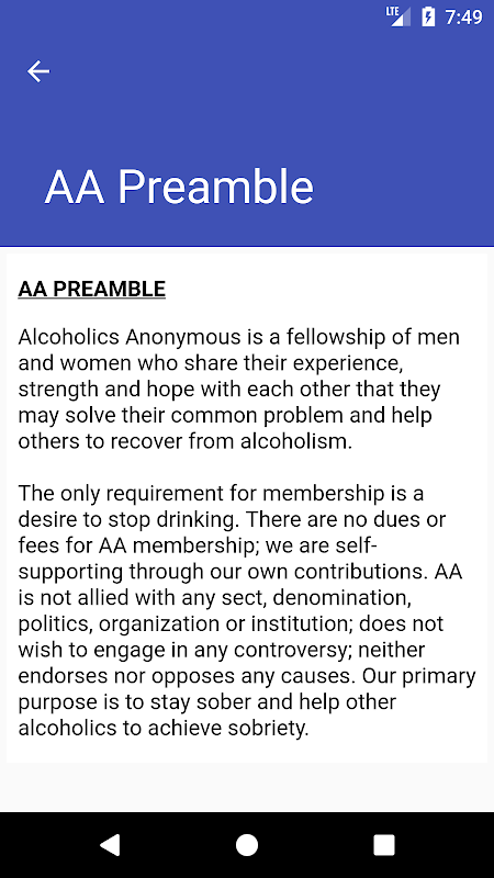 แอพนี้ยังมีเครื่องคิดเลขความสุขุมวรรณกรรม AA ที่คัดสรรมาอย่างดีและข้อความ Big Book ที่สมบูรณ์ 164 หน้า