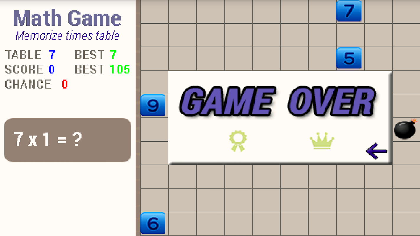 The game starts from the easy 2 x 9 times table up to more challenging 19 x 19 times table.