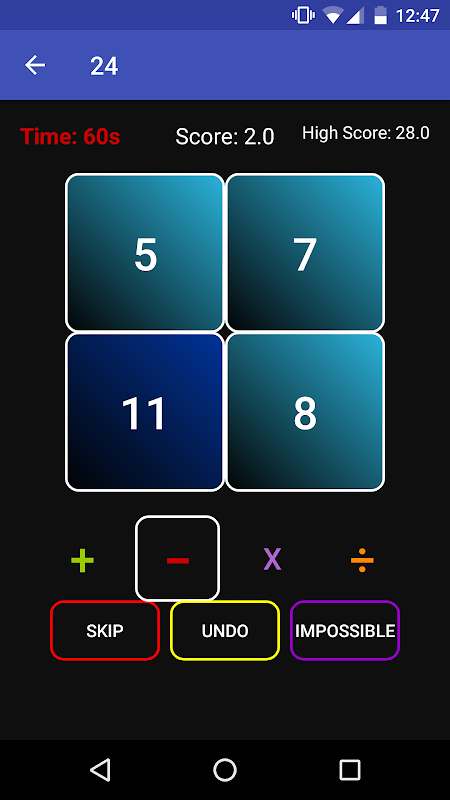 Designed to make your mind think quicker, 24 is a math game in which you must use four given numbers, and only the four basic operations (addition, subtraction, multiplication, and division) to make 24. Sounds simple at first glance, but the depth of the game will surprise you. Great as a mental exercise and as a way for children to solidify their mathematical foundation.