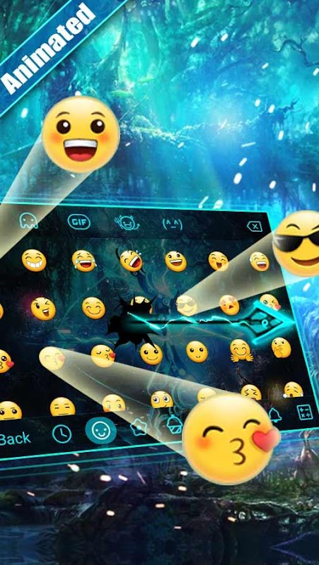 -Install the 3D Lightning Weapon Keyboard theme ---> Press its icon and activate Typany keyboard ---> It would be enabled by Typany Emoji Keyboard automatically!