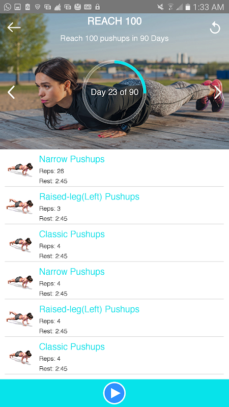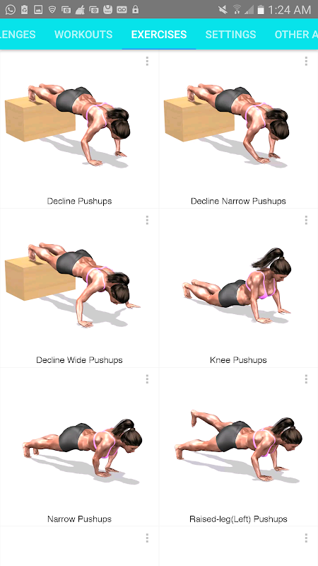 คุณสามารถปรับแต่งการออกกำลังกายแต่ละโดยการเลือกการออกกำลังกายที่คุณต้องการที่จะดำเนินการและวิธีการหลาย reps คุณคิดว่าคุณสามารถดำเนินการในการออกกำลังกายแต่ละ นี้ช่วยให้คุณที่จะผลักดันตัวเองให้สูงสุดของคุณในขณะที่การสร้างกล้ามเนื้อและความอดทนในเวลาเดียวกัน. เธ