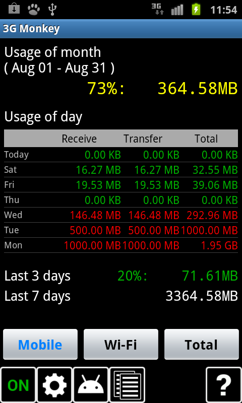 * Setting of three days mobile data usage limit.
