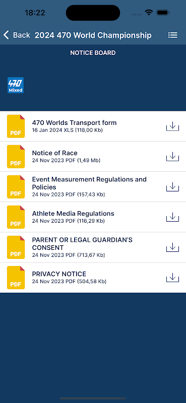 แอปพลิเคชั่นมือถืออย่างเป็นทางการของ 470 International Class Major Championships