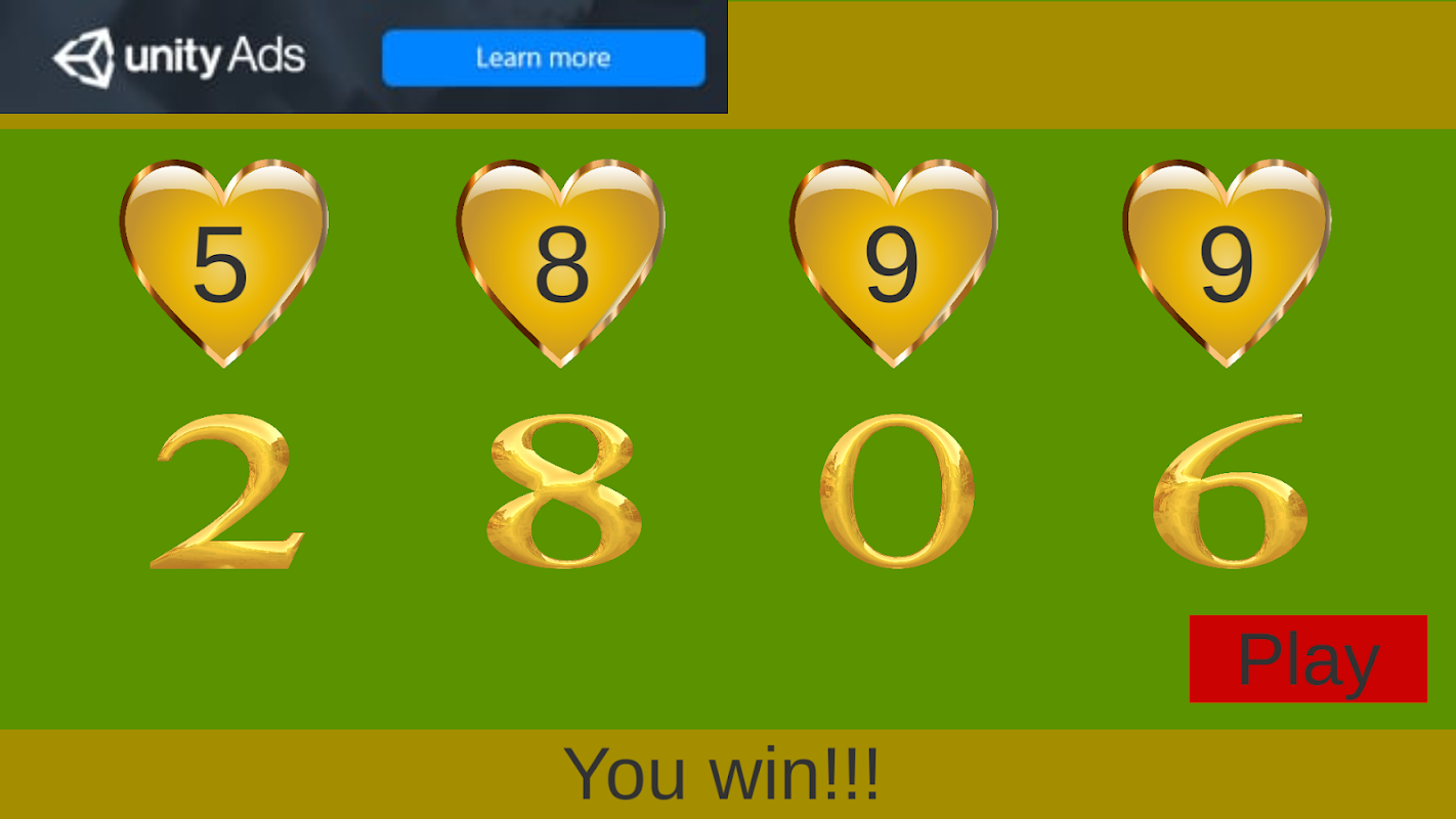 Press the Play button to play and any match between the top and bottom number will give a win.