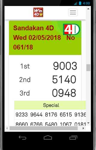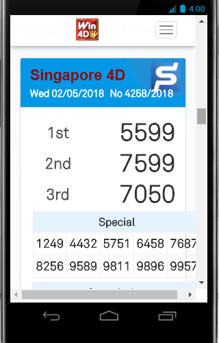 4D is a very popular game in Malaysia and Singapore. In Malaysia, Magnum 4D is the 1st legalized 4D Operator licensed by the Malaysian Government. Later on The 4D Game is available on every Wednesday, Saturday and Sunday in Both countries. In certain occasion, there will be a Special Draw that falls on Tuesday In Malaysia. DOWNLOAD ITS FREE
