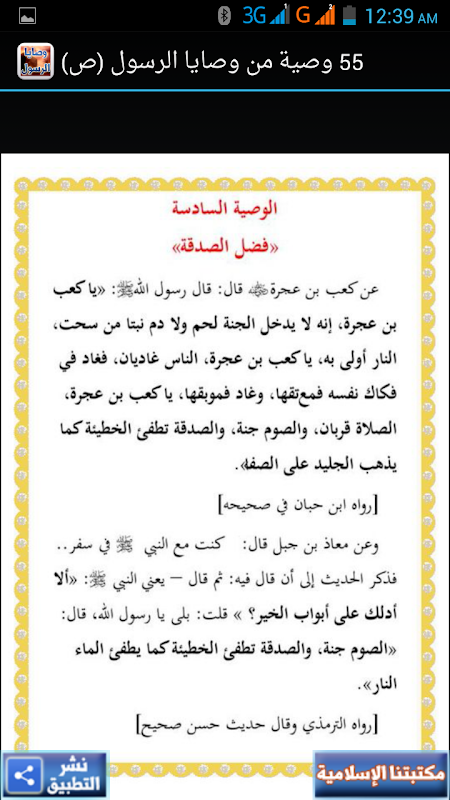 وصايا الرسول - يرسل التطبيق كل يوم وصية بدون انترنت ولكن فقط اضغط على وصية اليوم بعد تحميل التطبيق