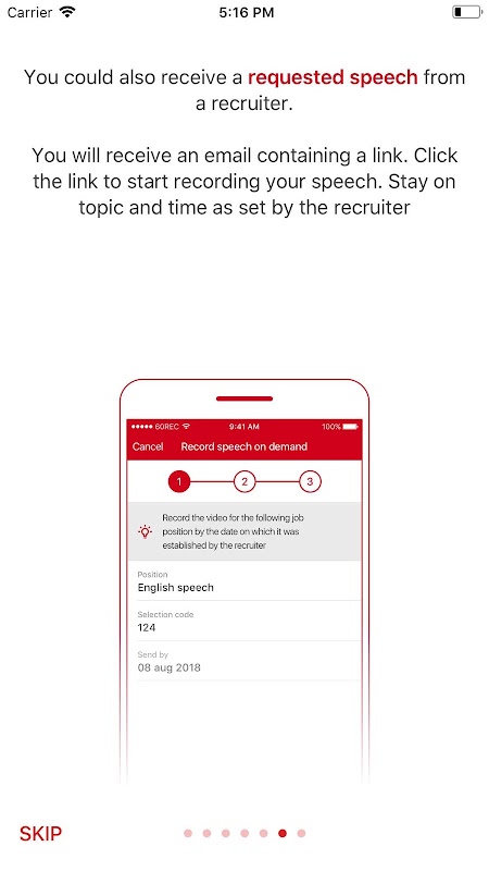 • Registrare: Registrarsi e cominciare subito a girare le proprie video cover letter in modalità selfie consente di arricchire la propria candidatura.