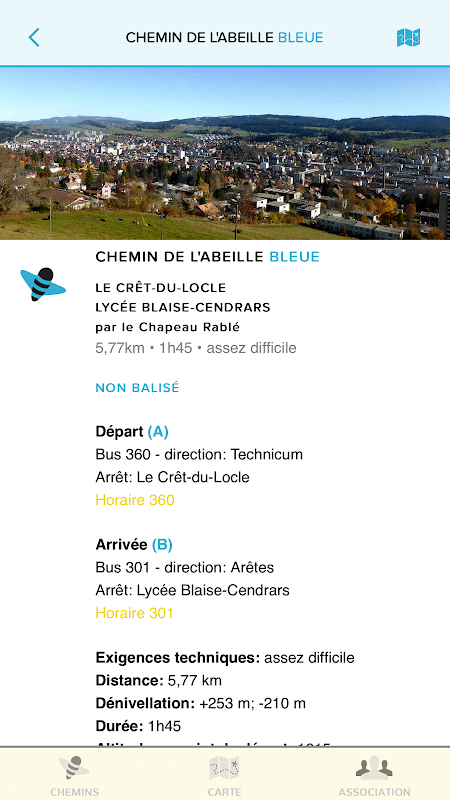 โปรแกรมประยุกต์ที่มีการปรับขึ้น 7 ง่ายของความยากลำบากขนาดกลางบนขอบของเมืองลา Chaux-de-Fonds ที่นาฬิกามหานครมรดกโลกของความเป็นมนุษย์