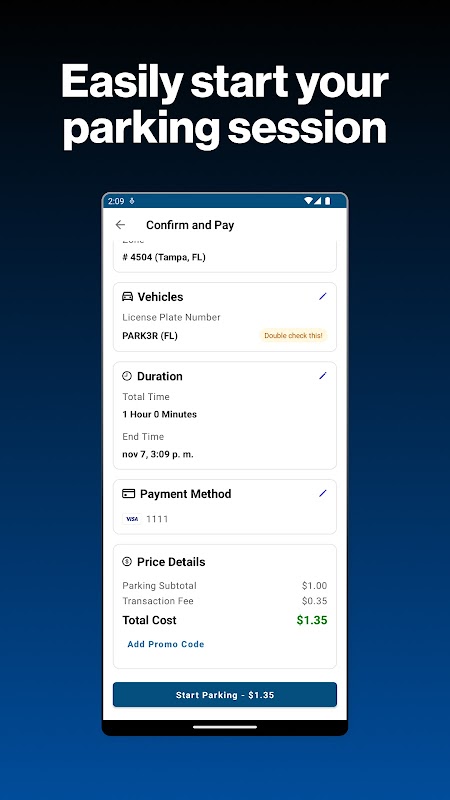 • ถนน ล็อต และโรงรถ: ป้อนหมายเลขโซนบนป้ายประกาศในพื้นที่ของคุณ เลือกระยะเวลาที่คุณต้องการจอดรถ และเริ่มเซสชั่นของคุณ ขยายเวลาในแอปหากคุณมาสาย