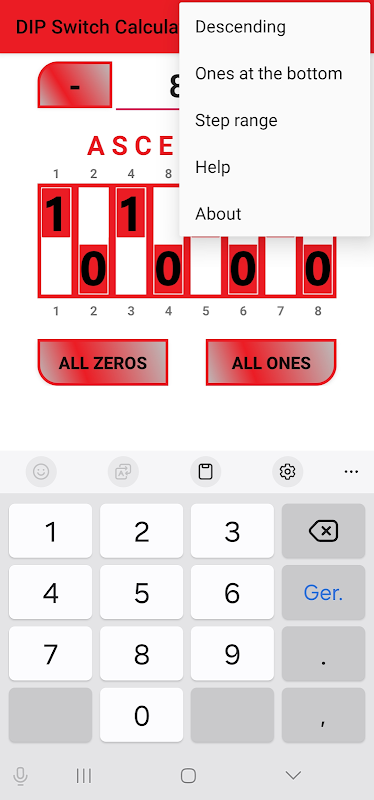 ไม่มีปุ่มคำนวณ แอปจะอัปเดตที่อยู่และตำแหน่งสวิตช์ DIP ทุกครั้งที่คุณเปลี่ยนแปลงบางสิ่ง