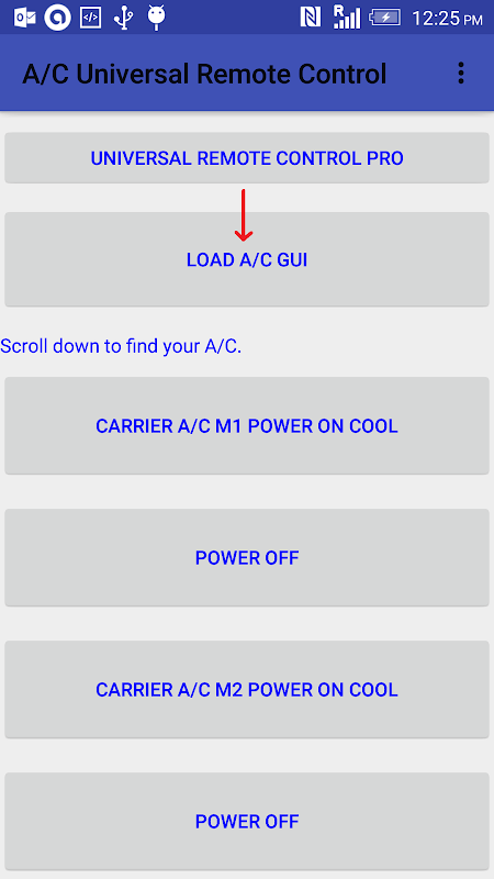 กดโหลดเครื่องปรับอากาศจากนั้นกดโหลดเครื่องปรับอากาศจากเมนู จากนั้นในรายการป๊อปอัพให้เลือก A / C ของคุณ