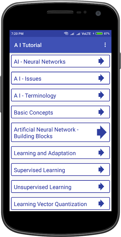 A I Tutorial app collections of Categories are below and provide all this Topic