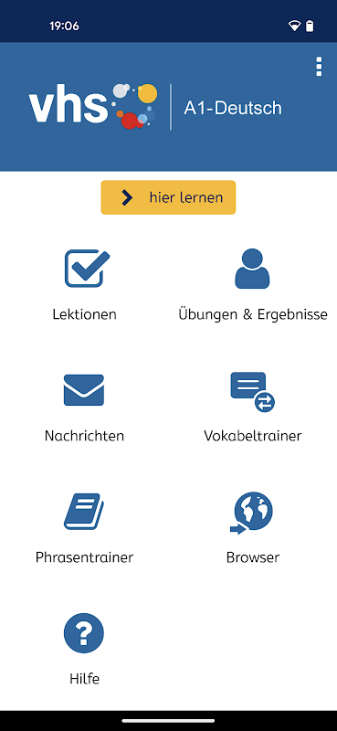 A1-German เป็นรุ่นสำหรับมือถือของหลักสูตรภาษาเยอรมัน A1: a1.vhs-lernportal.de