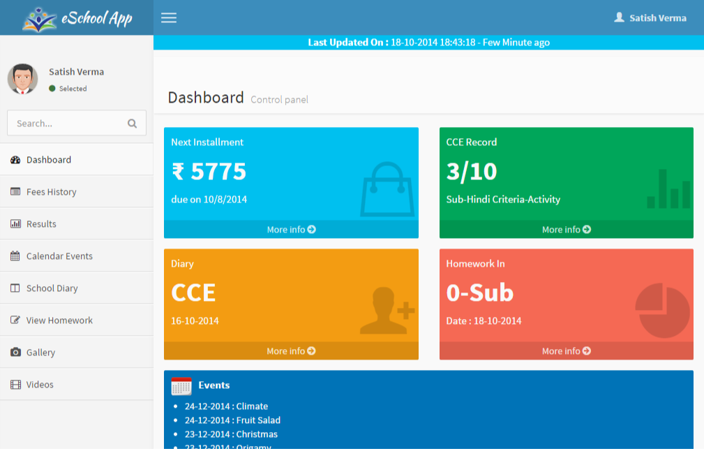 eSchool เป็น ERP การจัดการโรงเรียนที่ทันสมัยซึ่งช่วยให้โรงเรียนจัดการฟังก์ชันที่ซับซ้อน เช่น ค่าธรรมเนียม ผลลัพธ์ การเข้าเรียน ห้องสมุด หุ้น ตารางเวลา พนักงาน เงินเดือน การแจ้งเตือน นักวิชาการ เอกสาร การขนส่ง การสอบออนไลน์ โฮสเทล ฯลฯ eSchool App เป็นเครื่องมือสื่อสารเคลื่อนที่/แท็บเล็ตที่ปฏิวัติวงการระหว่างโรงเรียน นักเรียน และผู้ปกครอง ซึ่งช่วยให้ผู้ปกครองได้รับข้อมูลข่าวสาร มีความสุข และประทับใจ