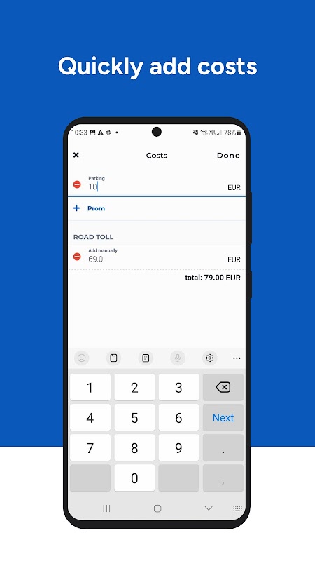 เพิ่มค่าจอดรถหรือค่าผ่านทางได้อย่างง่ายดายและใช้คุณสมบัติค่าใช้จ่ายอัตโนมัติที่มีอยู่ในนอร์เวย์