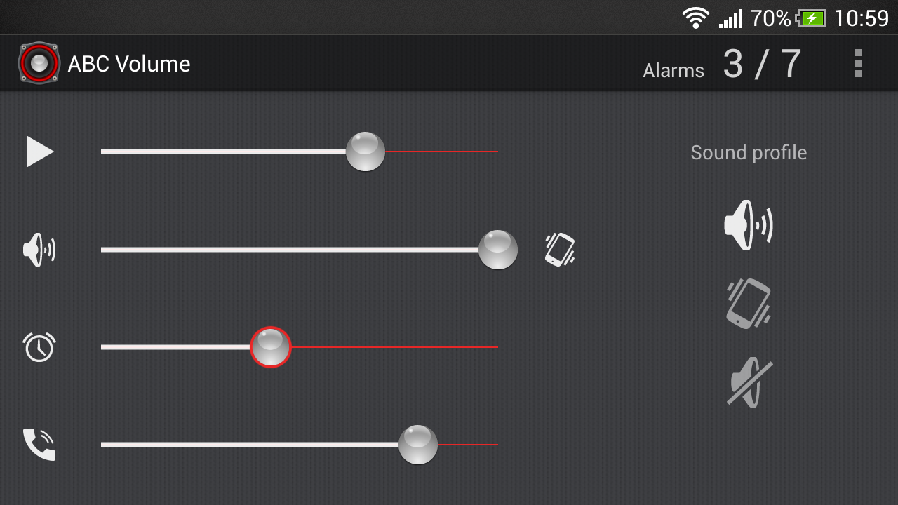 Application for quick setup volume levels ringtone, notifications, alarms, etc.