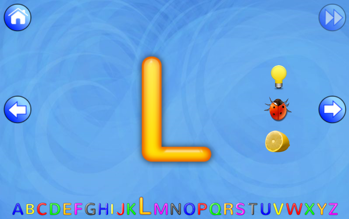 จดหมายแต่ละฉบับยังมีภาพตลกที่เกี่ยวข้องกับคำที่ขึ้นต้นด้วยตัวอักษรนั้น คุณยังสามารถแตะรูปภาพเหล่านี้เพื่อฟังว่าคำเหล่านี้ออกเสียงอย่างไร