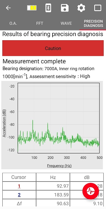 เชื่อมต่อสมาร์ทโฟนหรือแท็บเล็ตของคุณกับอุปกรณ์วินิจฉัยของ NSK แบบไร้สาย (ผ่านBluetooth®) เพื่อวัดค่าการสั่นสะเทือนพื้นฐาน (OA) สำหรับเครื่องจักรและอุปกรณ์ เรานำเสนอโหมดการประเมินสามโหมดที่เหมาะกับความต้องการของคุณ ได้แก่ การวิเคราะห์ความถี่ (FFT) การวิเคราะห์รูปคลื่นเวลา (WAVE) และการวินิจฉัยความแม่นยำของตลับลูกปืน
