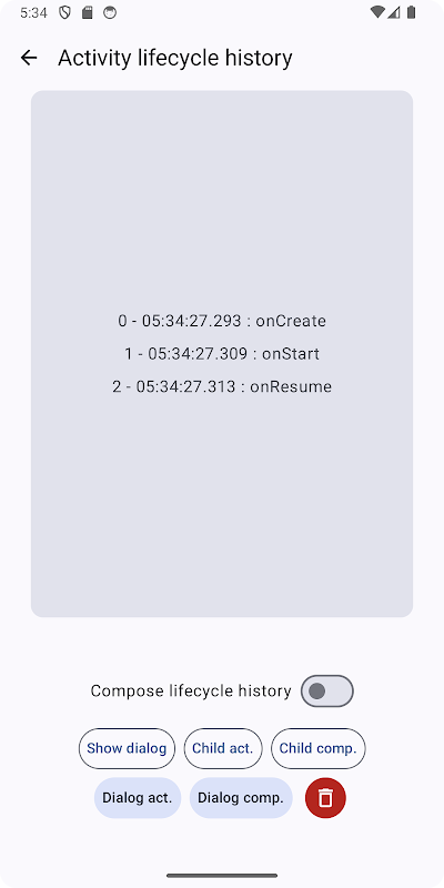 การสาธิตกิจกรรมวงจรชีวิตและสแต็กกิจกรรม