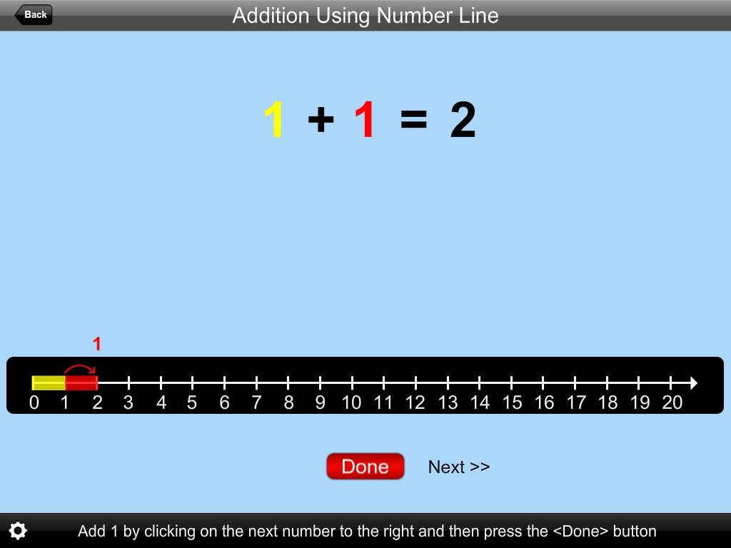 Click on the “Back” button to close “Addition Using Number Line” or return to the previous page.
