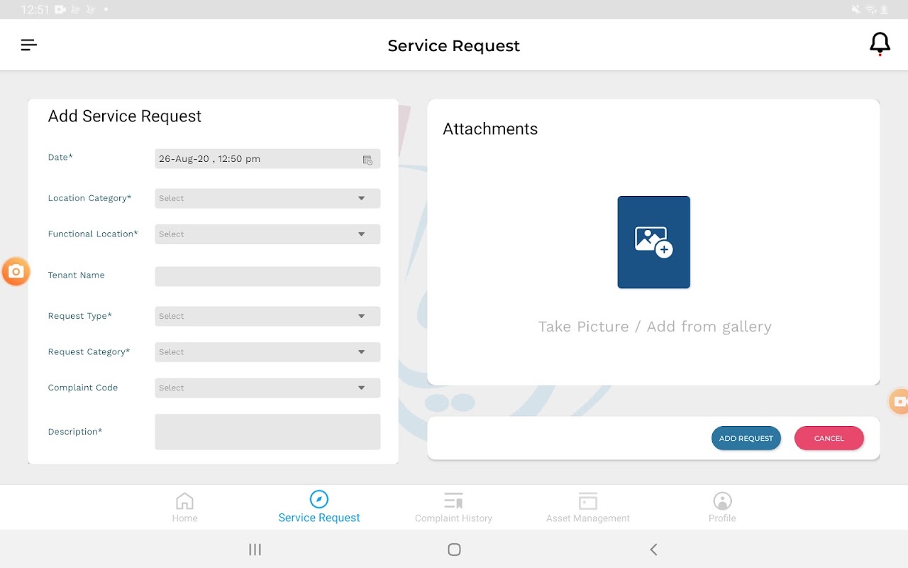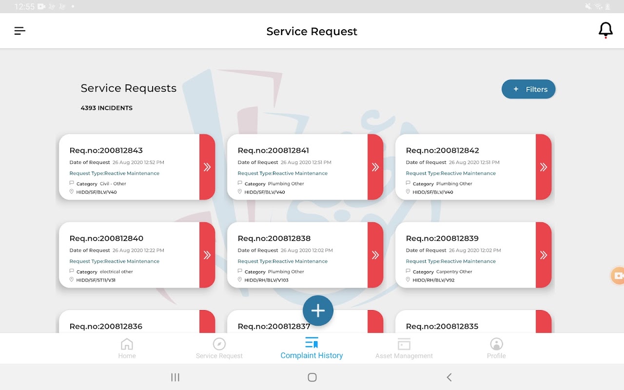 4.Complaint history lets technicians sort and filter requests based on date, location, contact details and Request category or Request type.