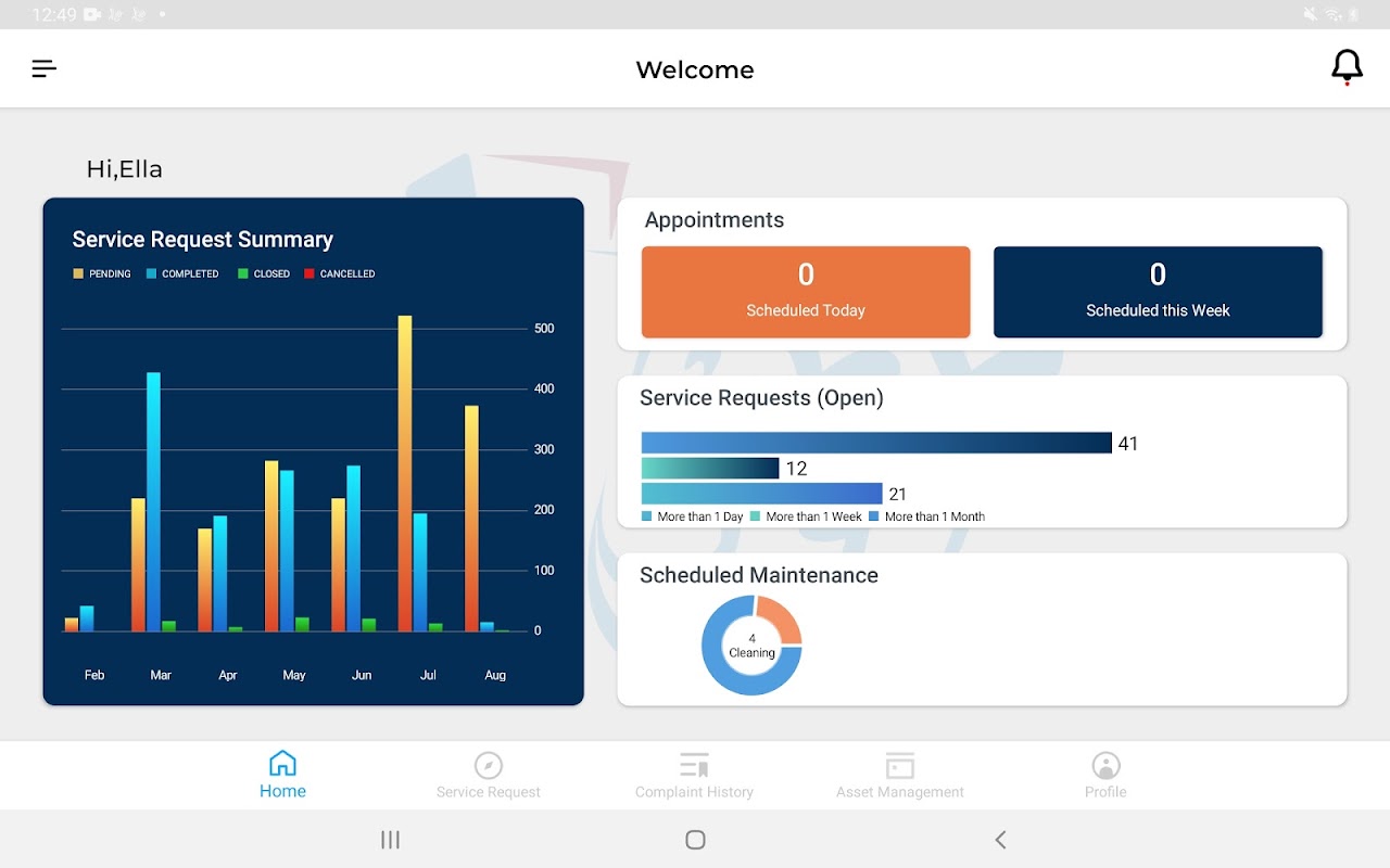 2.Dashboard provides scheduled maintenance, appointments and service request details.