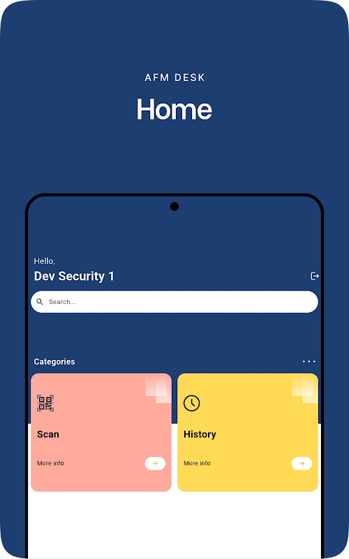 AFM Desk ทำหน้าที่เป็นแอปย่อยของแอป AFM Employee เมื่อพนักงานจองมื้ออาหาร ระบบจะสร้างรหัส QR เฉพาะขึ้นมา จากนั้นเจ้าหน้าที่รักษาความปลอดภัย/ผู้จัดการอาหารจะใช้แอป AFM Desk เพื่อสแกนรหัส QR นี้ เพื่อตรวจสอบการจองมื้ออาหารและอัปเดตบันทึกการเข้าร่วมงานทันที นอกจากนี้ แอปยังอนุญาตให้ป้อนข้อมูลด้วยตนเองในกรณีที่รหัส QR หายไป ช่วยให้ทราบข้อมูลเชิงลึกอันมีค่าเกี่ยวกับรูปแบบการใช้มื้ออาหาร