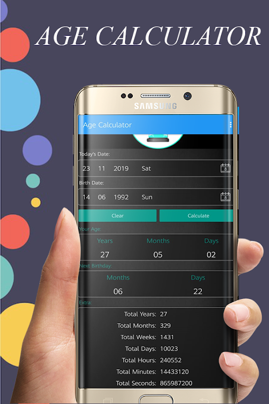 In this age calculator you can just pick your birth day Age Calculator provide your total age and next birthday upcoming birthday. age calculator, is a real age calculator app. It is free age calculator.