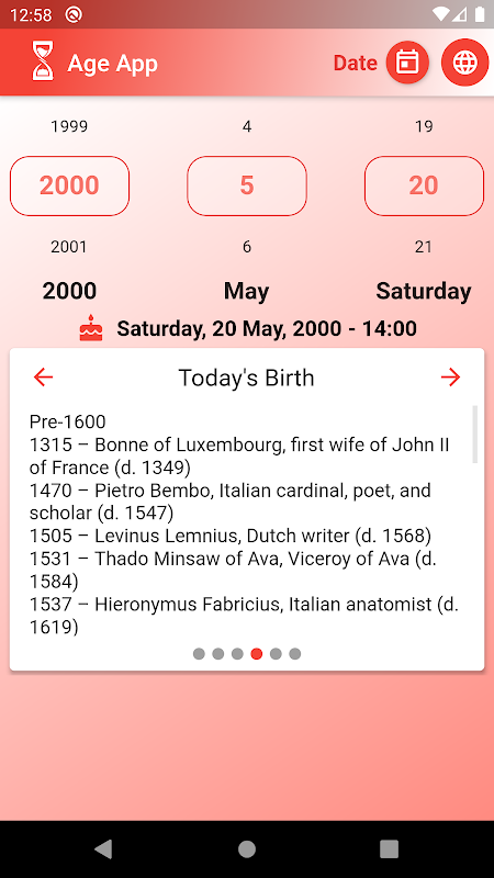 This application provide a simple and beautiful user interface easy to use. just pick your birthday date and / or your birthday time, then the Age app will directly calculate