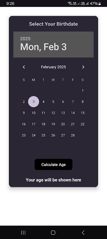 เปิดแอปและเลือกวันเกิดของคุณโดยใช้เครื่องมือเลือกวันที่ที่ใช้งานง่าย