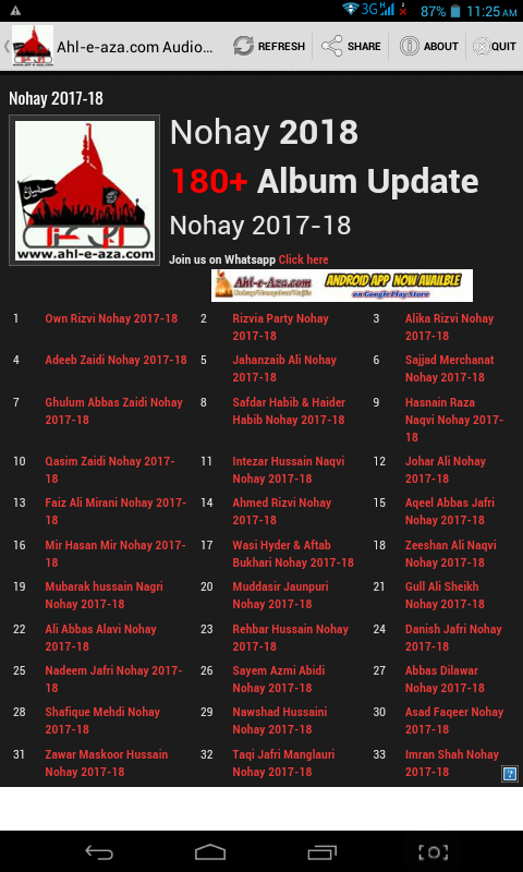All best Nohay, Manqabat New Manaqabat 2018 - Nadeem Sarwar Nohay 2017-18 - Mir Hassan Mir Nohay 2017-18 - Farhan Ali Waris Nohay 2017-18 Nohay New Nohay of Muharram 2018 (1439) updated. Largest collection of Nohay available in this application. Download nohay , Manqabat , Majalis Pakistan's Largest Shia Islamic Community App Latest Majalis,Nohas of Year 2017 All Audios In MP3 Free Download latest Manqabat 2017-18 of past many years specially 2017 & 2018