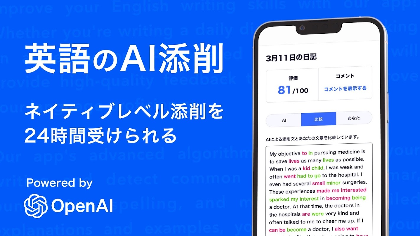 AI英作文+人工知能によるネイティブレベルの英語の添削・勉強 รุ่นเก่า