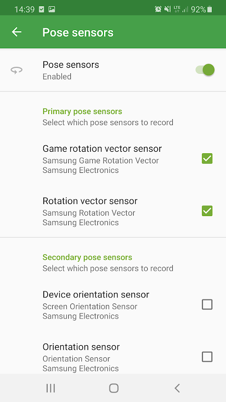 * บันทึกข้อมูลเซ็นเซอร์ที่ประทับเวลาเป็น CSV ในอัตราที่กำหนดเองได้ถึง 500Hz (เร็วเท่าที่รองรับโดยทั่วไปเซ็นเซอร์จะประกอบด้วยมาตรความเร่งไจโรสโคปสนามแม่เหล็กและเซ็นเซอร์การวางแนวอุปกรณ์ 3 มิติ แต่รองรับเซ็นเซอร์อุปกรณ์ทั้งหมด)