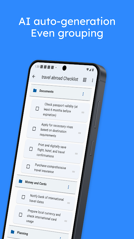 รายการตรวจสอบแบบกำหนดเองที่ขับเคลื่อนด้วย AI เพื่อการเดินทางที่สมบูรณ์แบบและการจัดการกิจวัตรประจำวัน